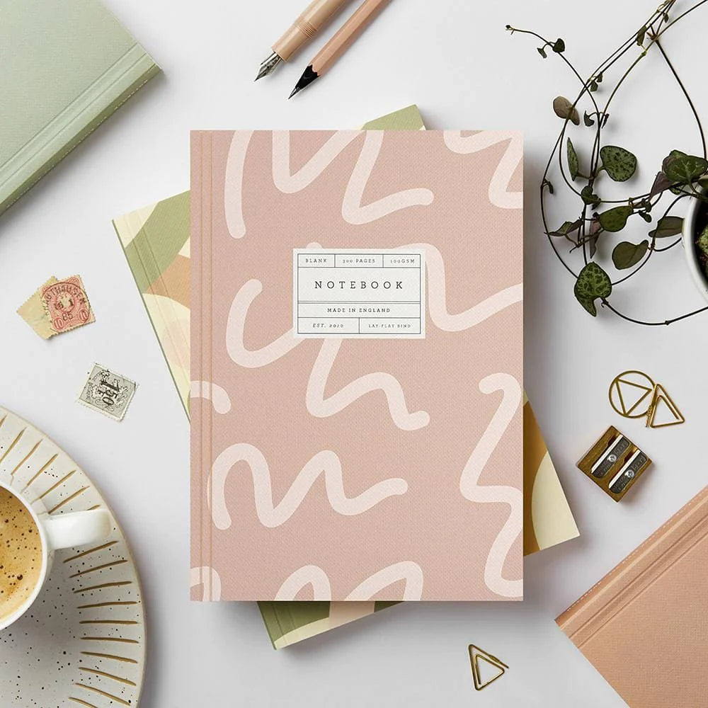 دفتر لاي فلات هيرلوم بنمط زهري وردي ومجموعة أقلام رصاص سوداء